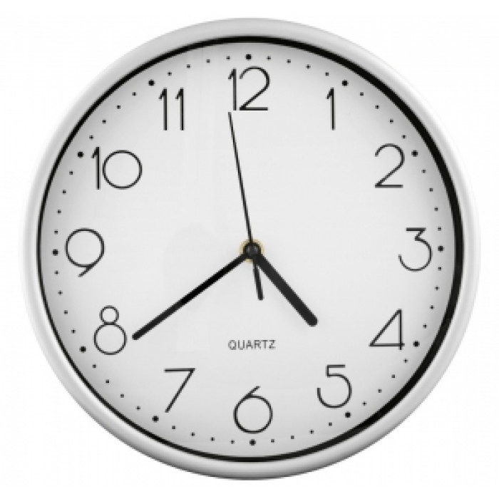 Круглые настенные часы, пластиковый корпус. Тип механизма: кварцевый. Элемент питания: батарея типа АА х 1 шт, батарейка в комплект не включена. Размеры: 25.2 х 25.2 х 4.2 см