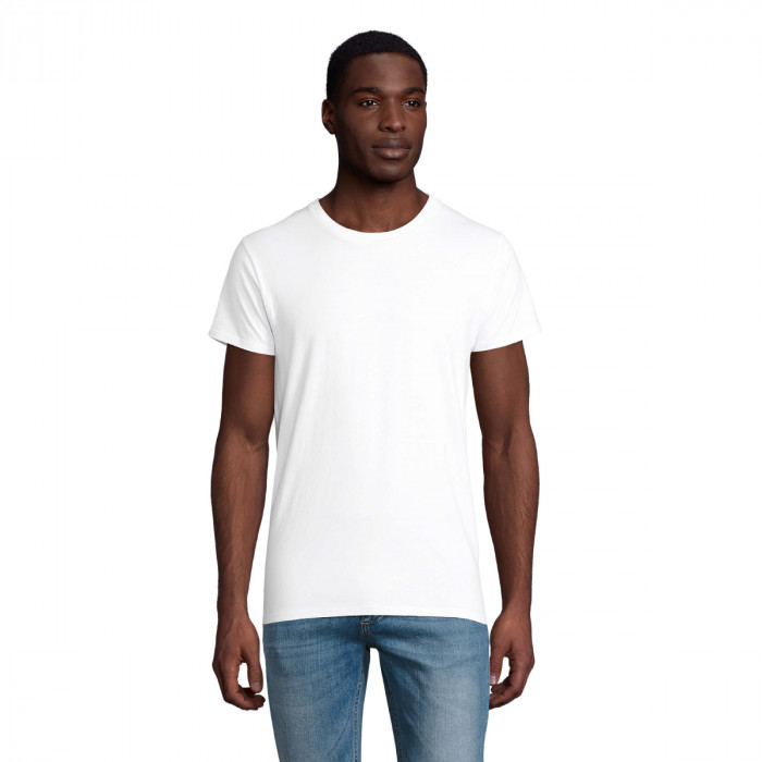 Чоловіча футболка PIONEER MEN. Круглий виріз. Зміцнююча тасьма по коміру. Облягаюча модель. Без бічних швів. 100% органічна легка бавовна з кардної пряжі, оброблена ензимами.