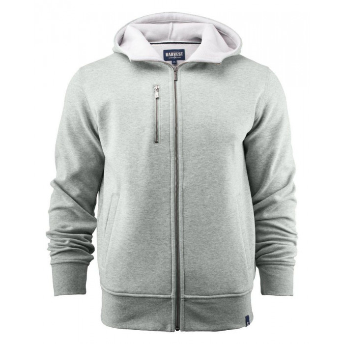 Мужская толстовка с капюшоном;, внутренняя часть выполнена изполиэстера. Металлическая молния, карман с молнией на груди. Уплотняющая резинка вокруг манжет и по низу. Два боковых кармана, серые шнурки пропущены в капюшоне, независимо от цвета толстовки. Лицевая сторона: 100% хлопок, изнаночная сторона: 100% полиэстер. 320 г/м2, серый меланж.