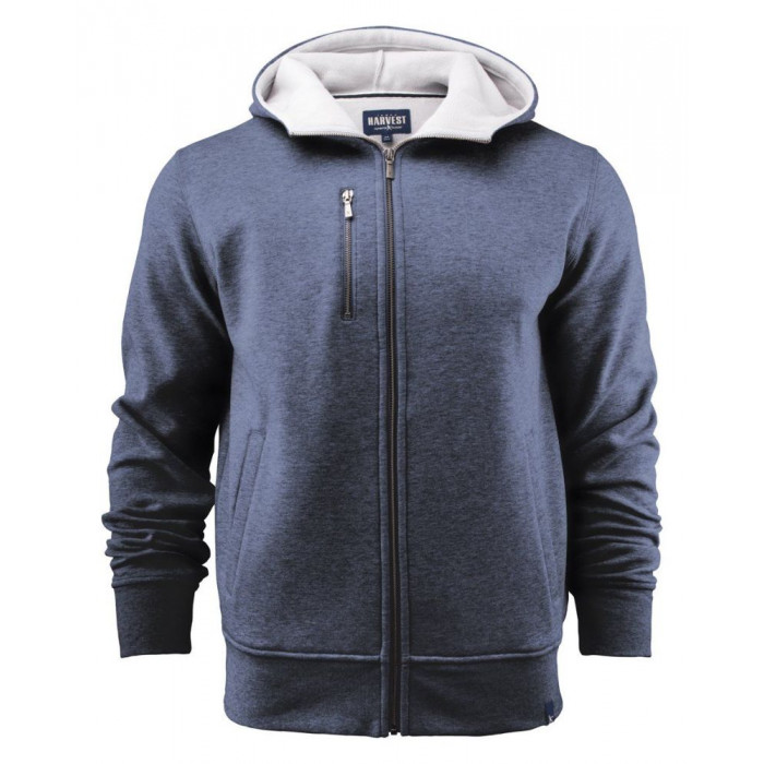 Мужская толстовка с капюшоном;, внутренняя часть выполнена изполиэстера. Металлическая молния, карман с молнией на груди. Уплотняющая резинка вокруг манжет и по низу. Два боковых кармана, серые шнурки пропущены в капюшоне, независимо от цвета толстовки. Лицевая сторона: 100% хлопок, изнаночная сторона: 100% полиэстер. 320 г/м2, серый меланж.