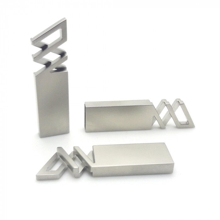Металлические USB флеш-накопители серебристого цвета (модель 0499-1) - имеют очень оригинальную форму и нестандартный дизайн. На верхней части изделия, в виде зигзагов, переплетаются металлические нити или линии. Достаточно свободное поле, где можно разместить логотип Вашей организации или любое иное изображение, позволят сделать этот аксессуар шикарным рекламоносителем. Эта модель, как и любые другие модели металлических флеш-накопителей, всегда будут надежно защищать Вашу информацию от порчи, ведь основательный и прочный корпус прослужит Вам много лет.