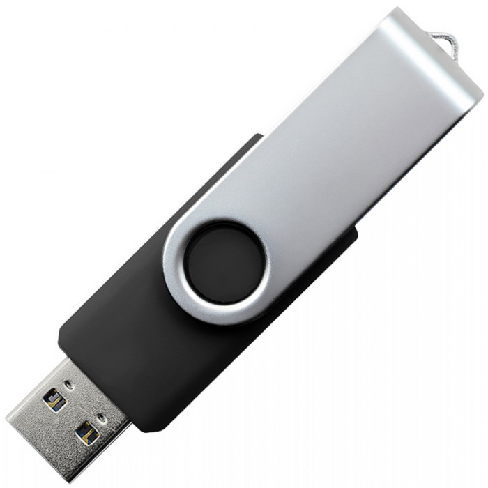 USB флеш-накопитель Twister черного цвета – пионер в мире сувенирных флешек. История этой модели начинается в далеком 2005 году. Эти USB флешки воплотили в своем корпусе удобство и практичность в использовании, что позволило им оставаться бессменным лидером на протяжении десятилетия. Имеющаяся поворотная скоба позволяет не только присоединить флешку к связке ключей и надежно защитить USB разъем, но и предоставляет возможность нанести на эту площадь корпоративный логотип, делая этот маленький и незаменимый гаджет очень креативным рекламоносителем и сувениром. Корпус флешки представляет собой комбинацию двух самых распространенных материалов: пластика и металла. При этом мы предоставляем возможность выбора цвета металлической скобы. Стандартный цвет металлической скобы выполненный в серебристом цвете. Опционально Вы можете остановить свой выбор на скобе черного, красного, синего, зеленого или золотистого цвета.