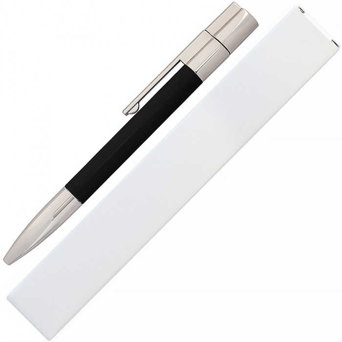 USB флеш-накопитель в виде шариковой ручки черного цвета (модель 1133-2) - это консервативный usb-накопитель. Он подойдет под любой стиль в одежде, станет неотъемлемым и строгим в исполнении корпоративным «инструментом». С одной стороны, это будет пишущее устройство, которое выручит Вас на важной сделке или на презентации. А с другой стороны – это цифровой носитель, на который Вы сможете сохранить самую важную и полезную для Вас информацию. Корпус флешки выполнен из комбинированного материала (пластик-металл), но имеет легкий вес и компактные размеры. Ее легко носить с собой, закрепляя фиксирующим элементом на кармашке пиджака или папке для бумаг. Опционально Вы можете выбрать синий или черный цвет чернил.