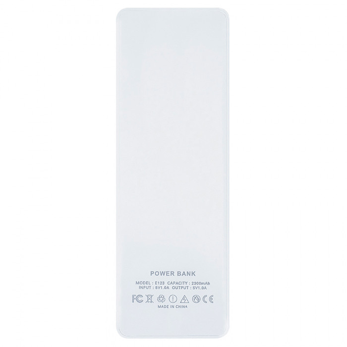Внешний аккумулятор под нанесение Вашего логотипа Е123 (белого цвета) с емкостью 2300 мАч – отличный выбор для практичных людей, которые в поисках полезного и одновременно востребованного сувенира. Подарив своим клиентам, партнерам или сотрудникам данный аксессуар – будьте уверены, они будут в восторге! Это портативное зарядное устройство имеет качественный прямоугольный корпус изготовленный из высокопрочного пластика, а самый распространенный в мире белый цвет корпуса позволит напечатать любой полноцветный логотип или корпоративное изображение, превратив данный прибор в отличный рекламоноситель!