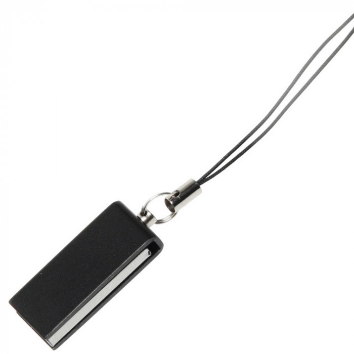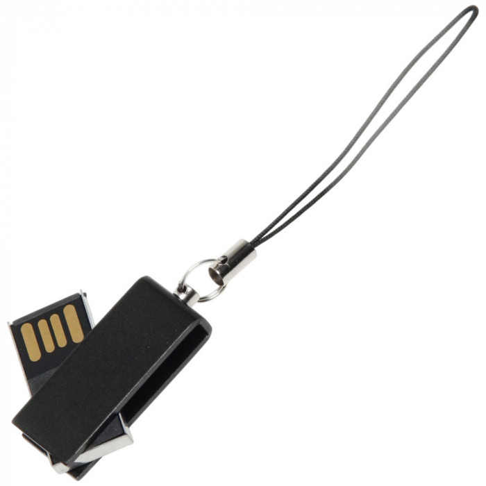 Флешка в алюминиевом корпусе с поворотным механизмом. Матовое цветное покрытие. Интерфейс USB 2.0. Имеется кольцо с петелькой длиной 50 мм для крепления в качестве брелока. Размер корпуса флешки в разложенном виде: 40 x 12 мм. Материал: алюминий. Индивидуальная упаковка - полипропиленовый пакет с клейкой лентой и белая картонная коробочка. Размер коробочки: 75 x 30 x 15 мм.