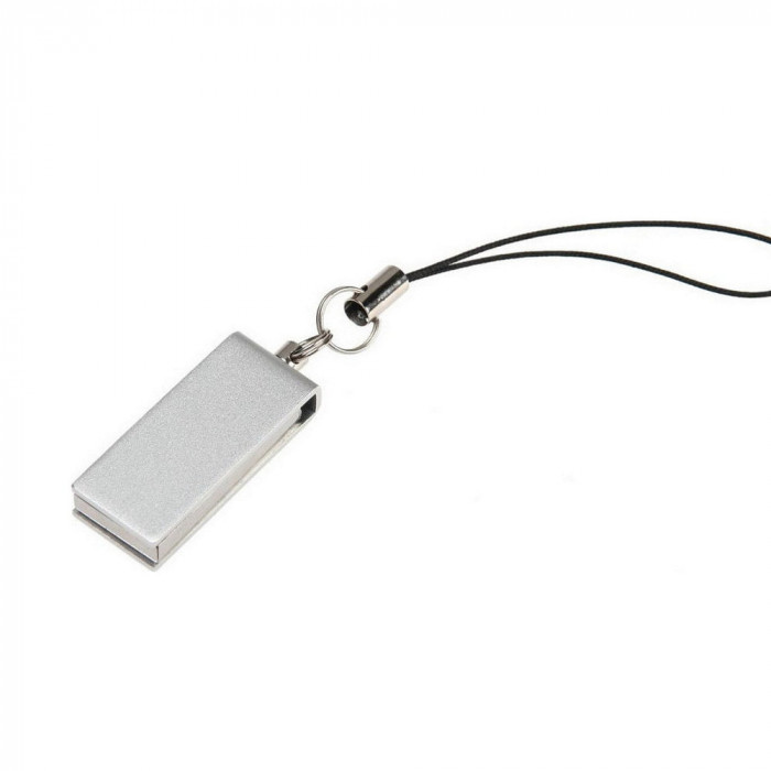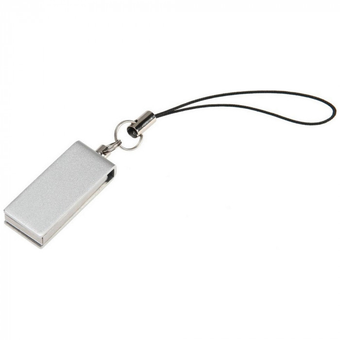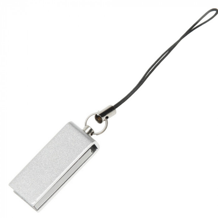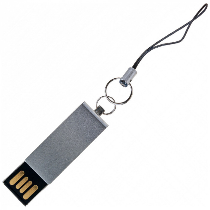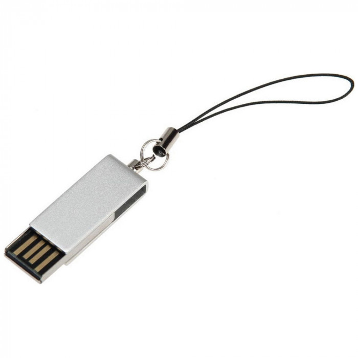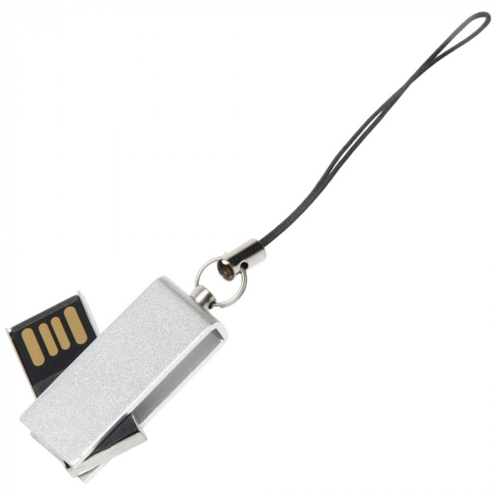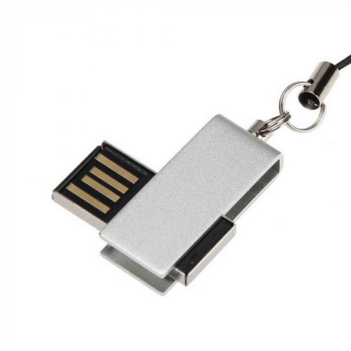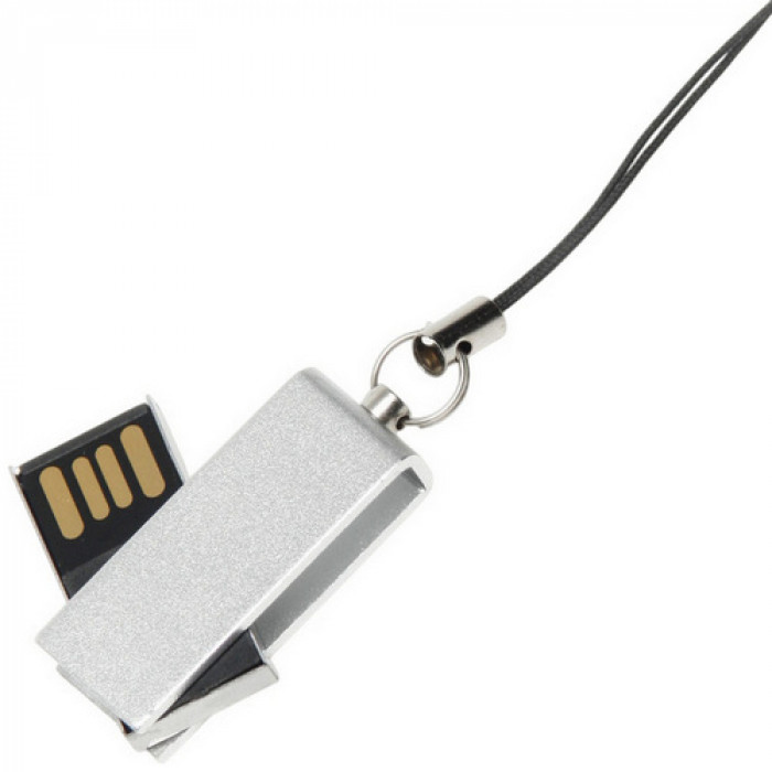 Флешка в алюминиевом корпусе с поворотным механизмом. Матовое цветное покрытие. Интерфейс USB 2.0. Имеется кольцо с петелькой длиной 50 мм для крепления в качестве брелока. Размер корпуса флешки в разложенном виде: 40 x 12 мм. Материал: алюминий. Индивидуальная упаковка - полипропиленовый пакет с клейкой лентой и белая картонная коробочка. Размер коробочки: 75 x 30 x 15 мм.