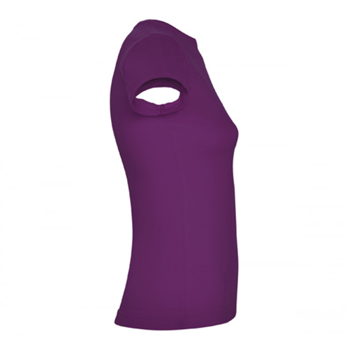 Приталенная футболка с короткими рукавами и боковыми швами. Двойная круглая горловина в рубчик 1 x 1. Усиленные закрытые швы горловины и плеч.