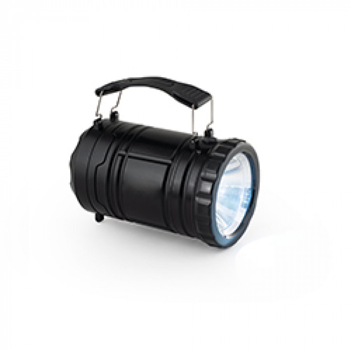 Ліхтар 2-в-1 з ABS і PS. 2 режими використання: вуличний або кемпінговий ліхтар, що дає змогу освітлювати великі площі, або як ліхтар за допомогою бічної ручки, яка також є знімною. Ліхтар оснащений світлодіодом COB led (200 люменів) і світлодіодом потужністю 1 Вт. Ідеально підходить для кемпінгу або відпочинку на природі. У комплекті 3 батарейки AA. Поставляється в коробці. 87 x 140 мм