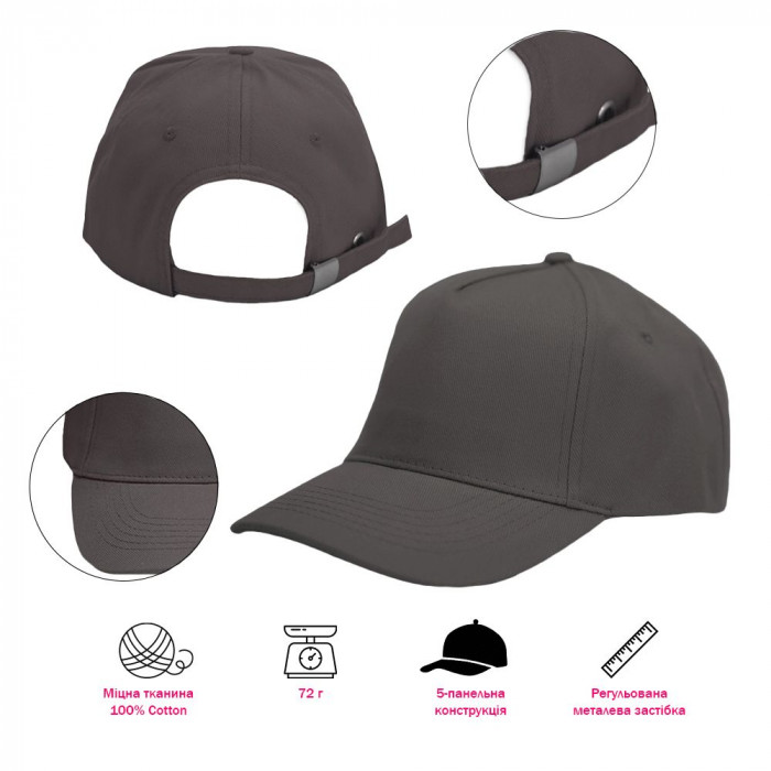 Размер регулируется с помощью металлической застежки, которая надежно фиксирует кепку и позволяет удобно настроить посадку.
