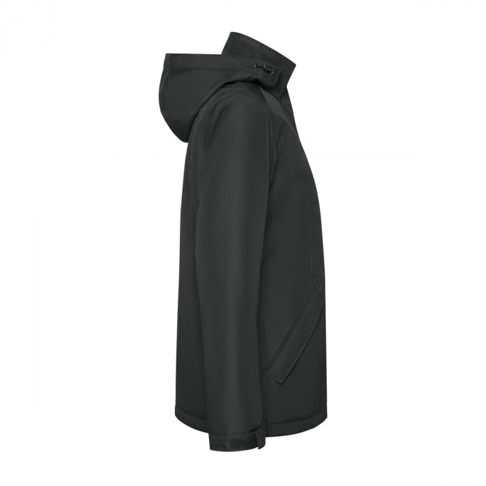 Пуховая куртка-парка с отстегивающимся капюшоном и эластичными регуляторами. Водонепроницаемый материал. Спереди молния, прикрытая широкой планкой из того же материала. Манжеты с регулятором на липучке. Боковые карманы с соответствующими молниями, прикрытые планкой из ткани. Внутренний карман слева. Внутренний доступ для персонализации. Внешний материал: 100% переработанный полиэстер Подкладка: 100% переработанный полиэстер Наполнитель: 100% переработанный полиэстер 400 г/м²