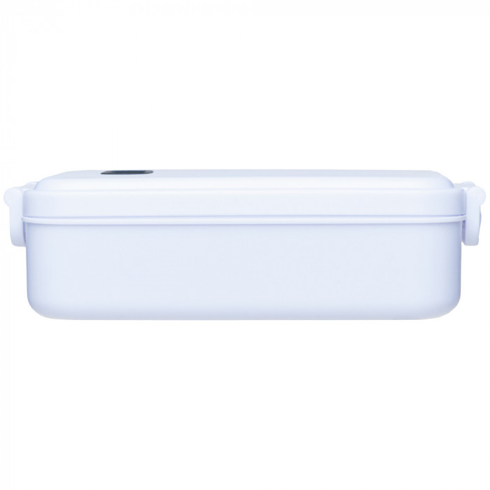 Ланч-бокс из полипропилена с двумя фиксаторами крышки. В крышке имеется силиконовый клапан для возможности использования в микроволновой печи. Крышка герметично прилегает благодаря прорезиненному краю. Объем: 800 мл. Материалы: полипропилен, силикон. Индивидуальная упаковка - полиэтиленовый пакет.