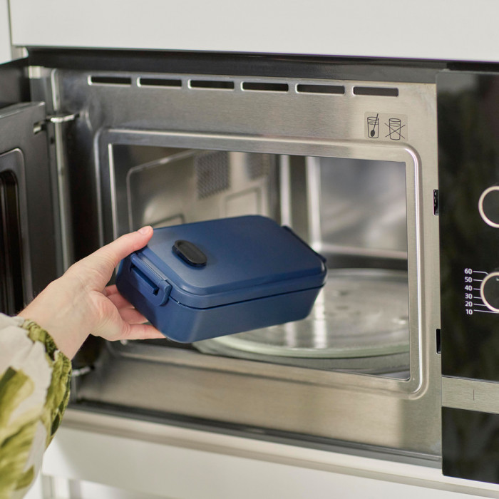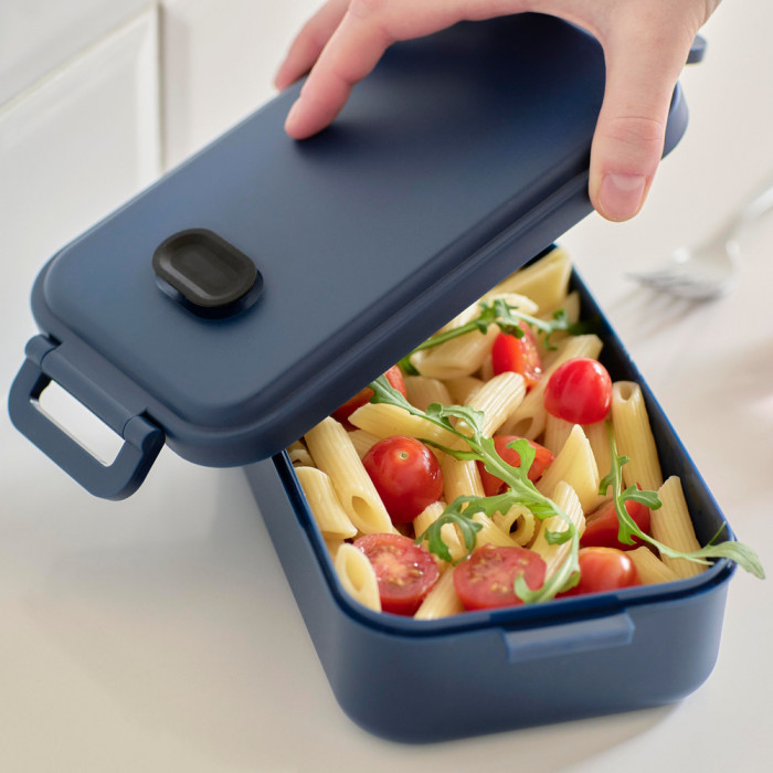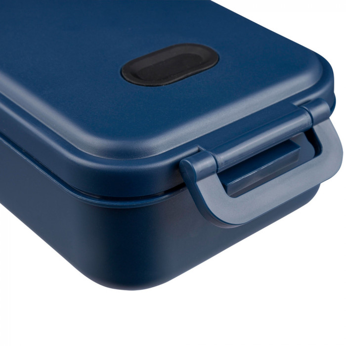 Ланч-бокс из полипропилена с двумя фиксаторами крышки. В крышке имеется силиконовый клапан для возможности использования в микроволновой печи. Крышка герметично прилегает благодаря прорезиненному краю. Объем: 800 мл. Материалы: полипропилен, силикон. Индивидуальная упаковка - полиэтиленовый пакет.