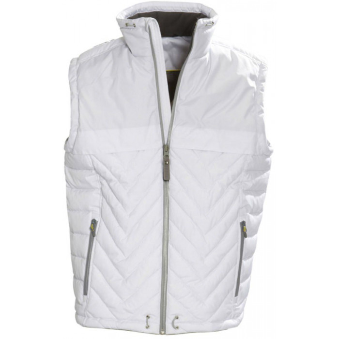 Водонепроницаемая безрукавка унисекс с прорезиненными замками-молниями. Уплотняющие резинки в нижней части туловища и вокруг воротника. Внутренние части карманов и воротника подшиты флисом. Два кармана с замками-молниями.