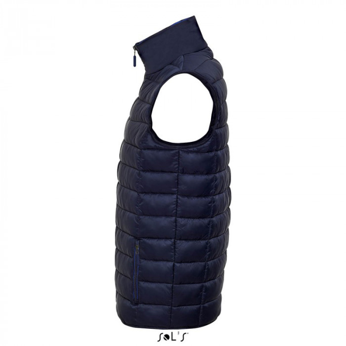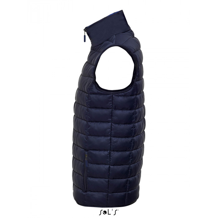 2 кармана на молнии в цвет подкладки. Воротник-стойка, приталенная модель. Окантовка по низу жилета тон в тон100% нейлон. Подкладка из 100% нейлона. Набивка: 100% полиэстер - 180 г/м².