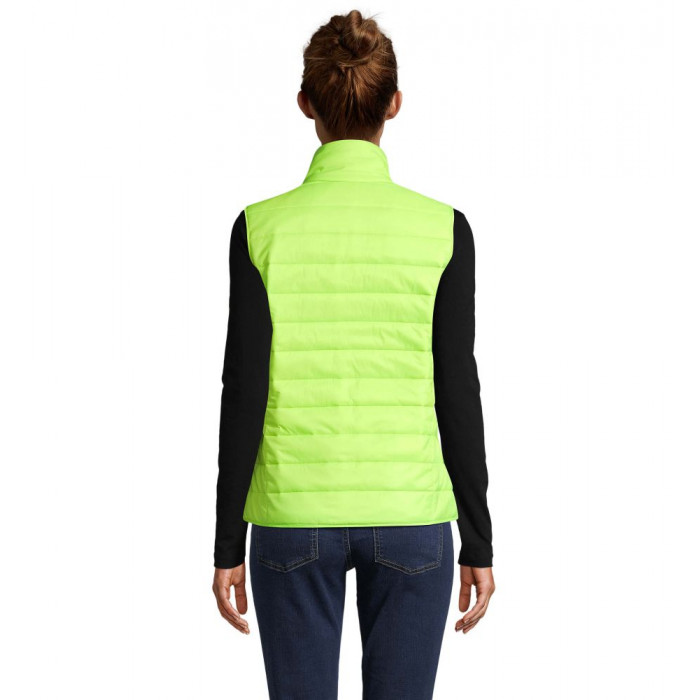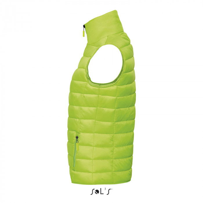 100% нейлон Подкладка из 100% нейлона Набивка: 100% полиэстер - 180 г/м² 2 кармана на молнии в цвет подкладке Воротник-стойка, приталенная модель Окантовка по низу жилета тон в тонЛегкий и теплый материал