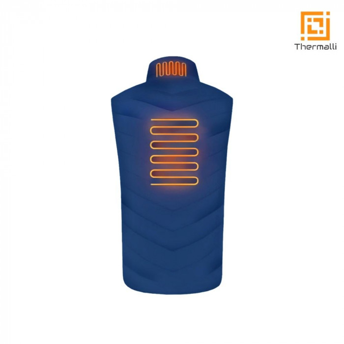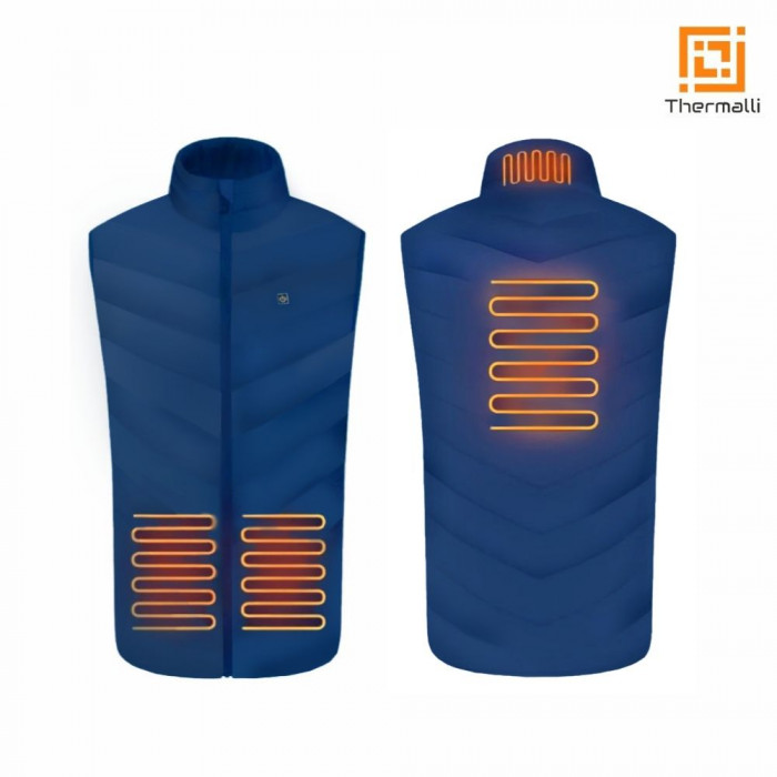 Жилет имеет 4 зоны нагрева – спереди справа и слева, на воротнике и на спинке. Углеродные нагревательные элементы работают от любого внешнего аккумулятора (павербанк в комплект не входит).