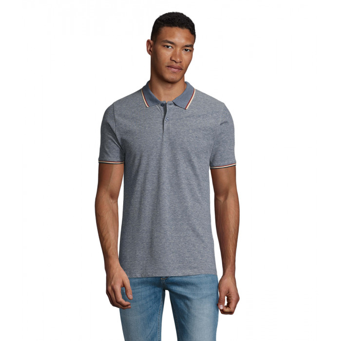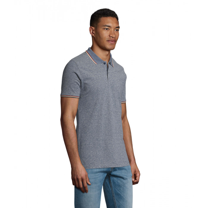 Мужская меланжевая рубашка поло PANAME MEN. Короткий рукав. Планка с 3 пуговицами. Кроеный трикотаж. Воротник и края рукавов из резинки в контрастную полоскуХлопок пике 180 г/м². 60% хлопок - 40% полиэстер. Женская версия - арт.02082 PANAME WOMEN.