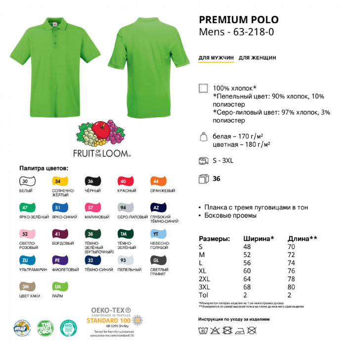 Теніска 'Premium Polo' L (Fruit of the Loom)