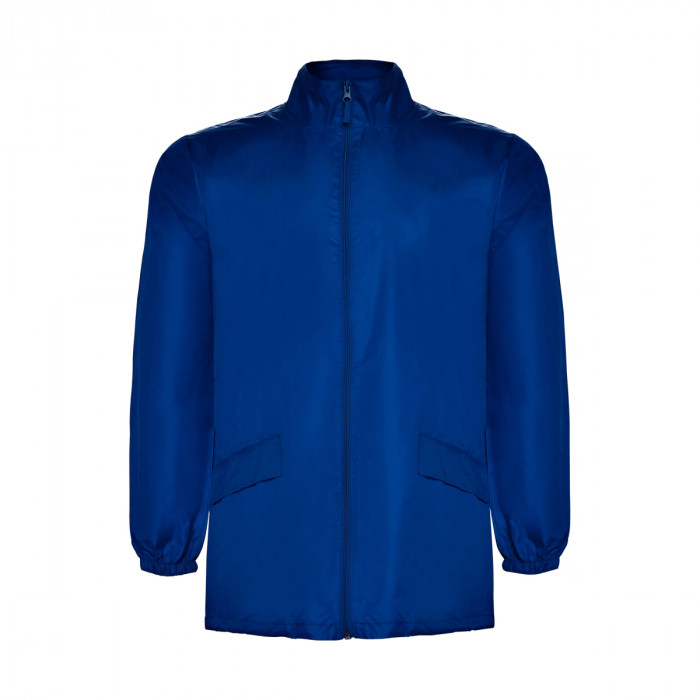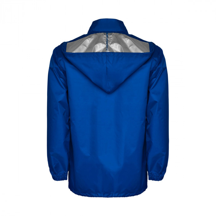 Водонепроницаемый плащ с высокой горловины и складной капюшон. Прочный материал из полимерных волокон с защитной пропиткой, не впитывающий влагу. Имеет регулировочный шнурок. Передняя молния с соответствующим съемником. Два боковых кармана с клапанами. Эластичные манжеты. Эластичный ремень внутри кармана для складывания и хранения. Материал: 100% водонепроницаемый полиэстер, серебристое покрытие, 70 г/кв.м.
