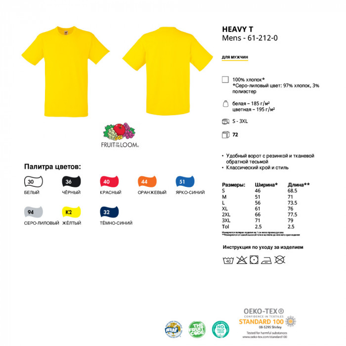 Футболка 'Heavy T' S (Fruit of the Loom)
