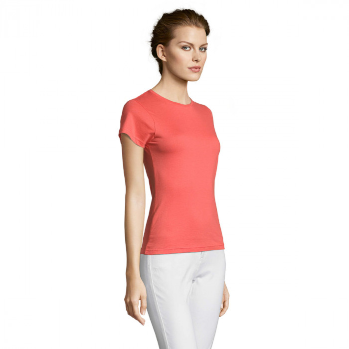 Футболка женская SOL’S MISS. Стиль: женственный. Приталенная модель, тонкий ворот, изделие выкроено из трикотажного полотна. Материал: ДЖЕРСИ 150, гребенной 100% хлопок, укрепляющая тесьма по вороту, край горловины из джерси. Вариант унисекс: REGENT-11380. Вариант для детей: REGENT KIDS-11970, стр. 116. Вариант для девочек: CHERRY-11981, стр. 117.