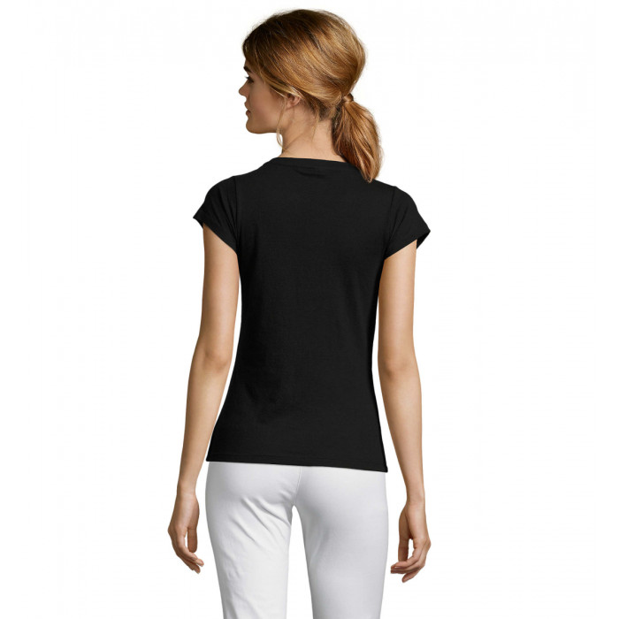 Футболка женская с v-образным вырезом SOL’S MOON. Стиль: женственный. Приталенная модель;V-образный вырез отделан резинкой с эластаном, изделие выкроено из трикотажного полотна. Материал: ДЖЕРСИ 150, олугребенной 100% хлопок, укрепляющая тесьма по вороту. Вариант для мужчин: MASTER-11155