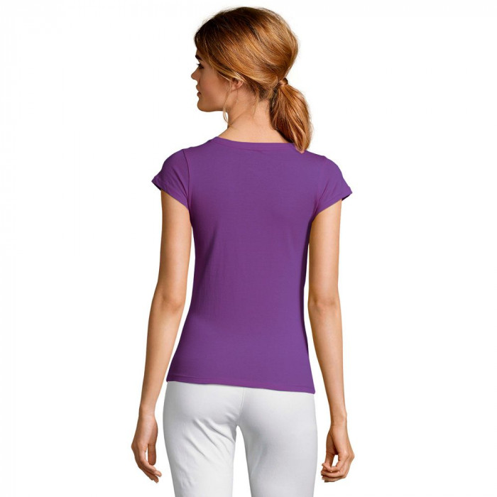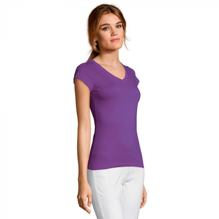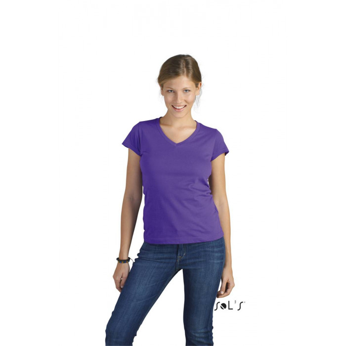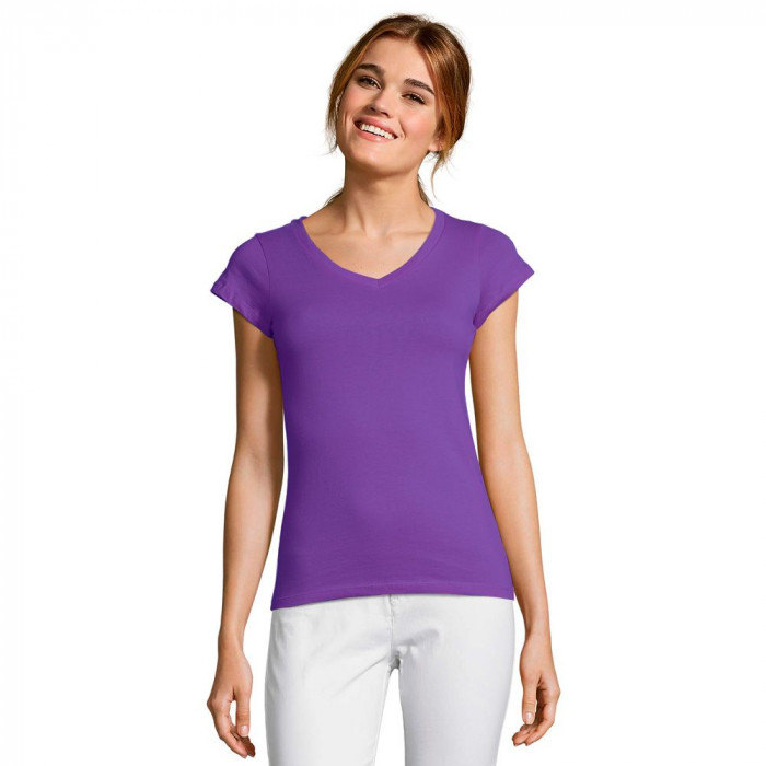 Футболка женская с v-образным вырезом SOL’S MOON. Стиль: женственный. Приталенная модель;V-образный вырез отделан резинкой с эластаном, изделие выкроено из трикотажного полотна. Материал: ДЖЕРСИ 150, олугребенной 100% хлопок, укрепляющая тесьма по вороту. Вариант для мужчин: MASTER-11155