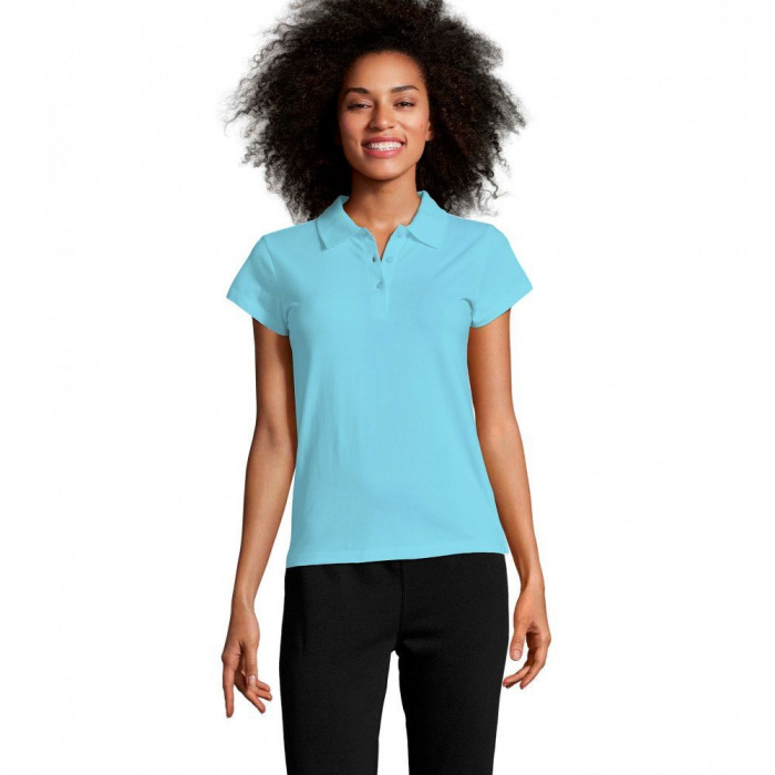 Рубашка поло женская SOL’S PRESCOTT WOMEN. Стиль: модный. Планка с 3 пуговицами в тон с прямым низом, кроеный трикотаж. Запасная пуговица на внутренней боковой строчке изделия. Материал: ДЖЕРСИ 170, 100% полугребенной хлопок, укрепляющая тесьма по вороту, край воротника связан резинкой. Вариант для мужчин: PRESCOTT MEN-11377