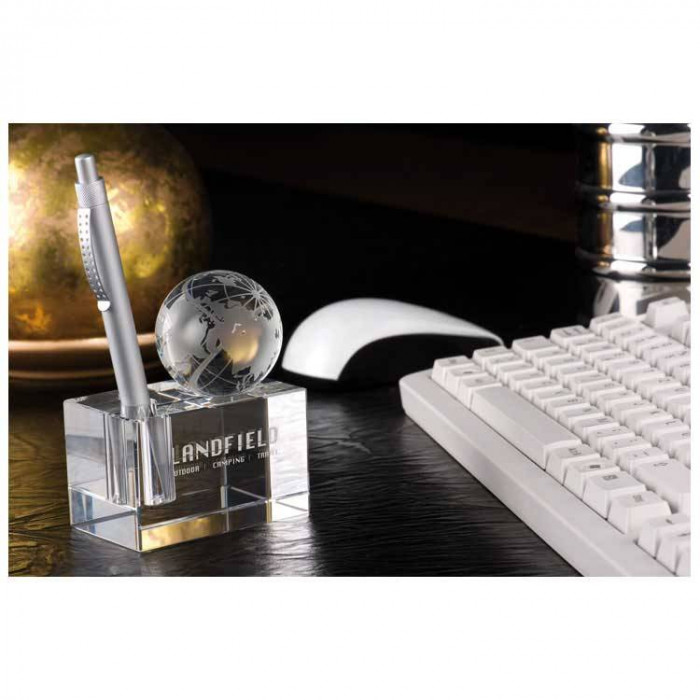 Сделайте Вашу рекламу "Ловителем взглядов" на каждом столе. Мы выгравируем ваш лого или слоган прям в стеклянном массиве под снимающимся шаром и держателем для ручек.