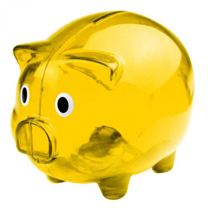 Оригинальная и забавная копилка в форме свинки. Выполнена из прозрачного пластика. Доступна в четырёх цветах. Рекламный логотип предлагаем нанести на одном боку копилки.