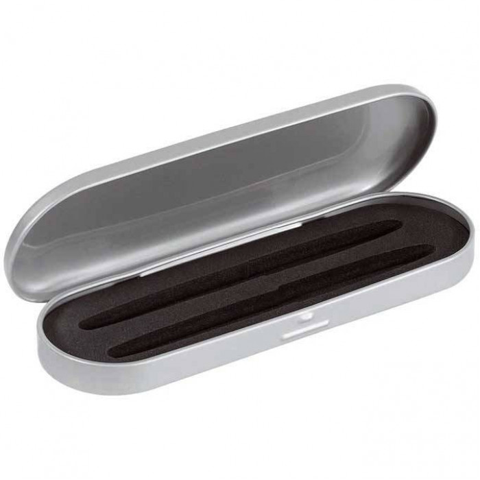 Металлический футляр для 2-х письменных приборов. Предназначен для сторонников практичных решений. Логотип на крышке футляра.