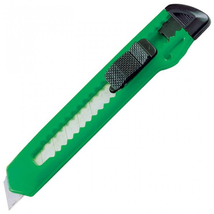 Нож с пластмассовым корпусом, кнопками выдвижения и фиксации сегментированного сменного лезвия. Группа нанесения: T3