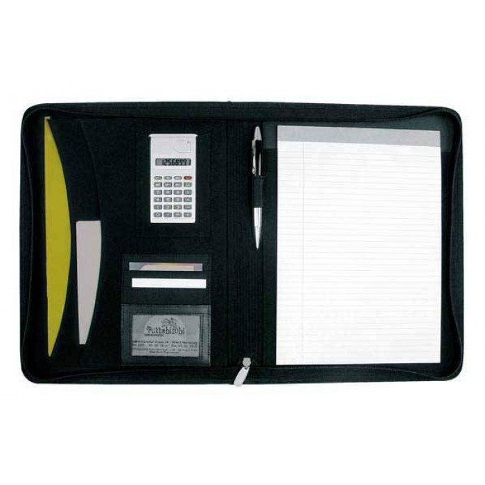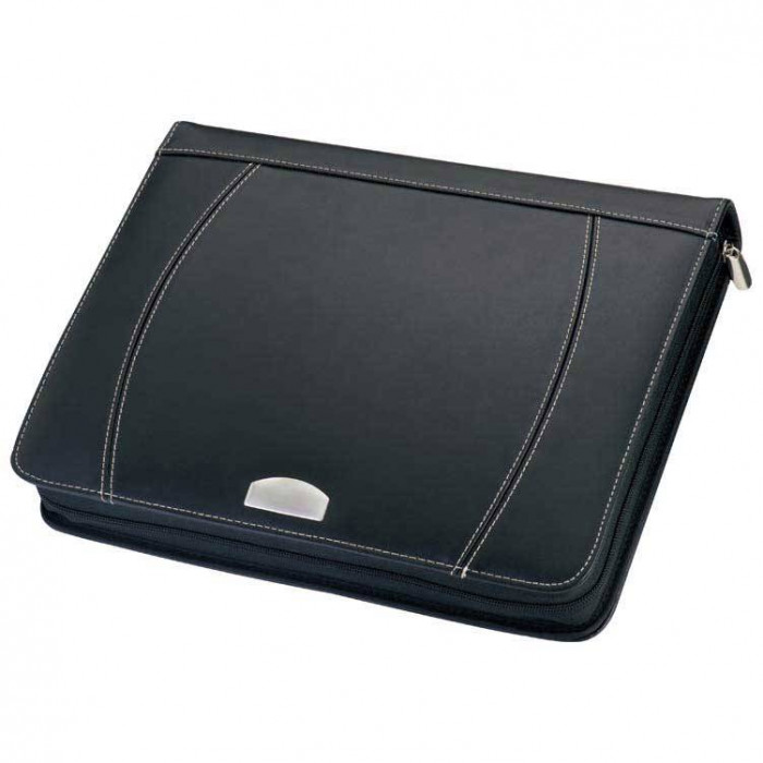 Папка А4, выполненная из кожи с блоком А4, калькулятором и ручкой. Исключительным дополнением являются белые швы, придающие елегантность. Рекламный логотип предлагаем наносить на специально предназначеном для этого металлическом элементе.