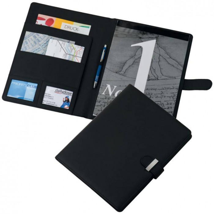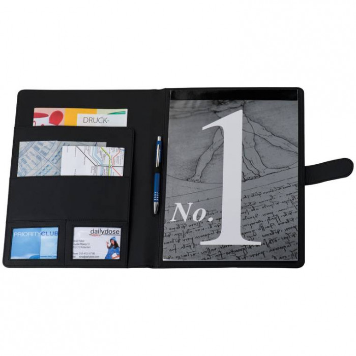 A4 папка из мягкого материала PU. Внутри карманы для кредитных карт, держатель для ручки и блокнот 50 листов. Упакован индивидуально в полиэтиленовый пакетик. Группа нанесения: L3.
