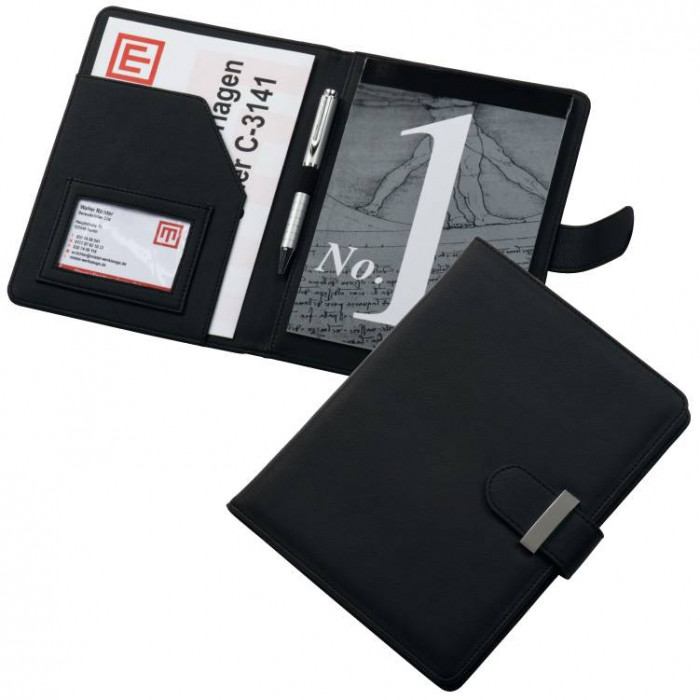 Папка А5 изготовлена из мягкого полиуретана ПУ. Внутри находятся карманчики на кредитные карты, блокнот 50 листов. Упакован индивидуально в полиэтиленовый пакетик. Группа нанесения: L3.