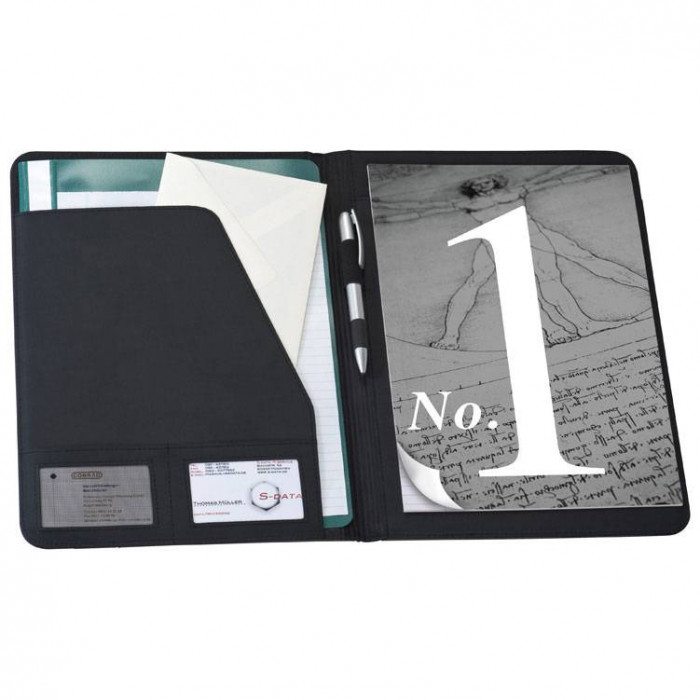 Папка сделана из кожи PU похожей на натуральную содерщит: две рукоятки для ручек (внутри и снаружи папки), блокнот А4 в линии и три перегородки. Группа нанесения:S1/HS