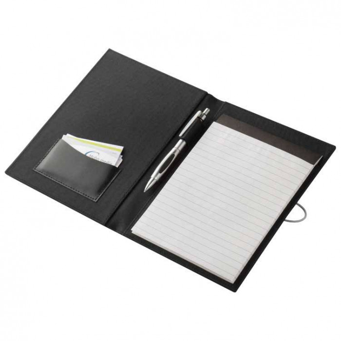Современная папка для конференций формата А5. С металлической застежкой. Внутри объемное отделение для бумаг и блокнот на 15 страниц