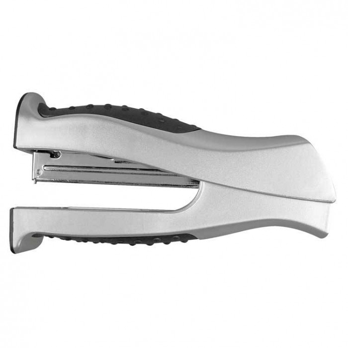 Стэплер оригинальной формы выполнен из прочного пластика с резиновыми элементами, для комфортного пользования. Доступен в нескольких цветах: красный, синий и серый. Рекомендуем наносить печать на корпусе стэплера.