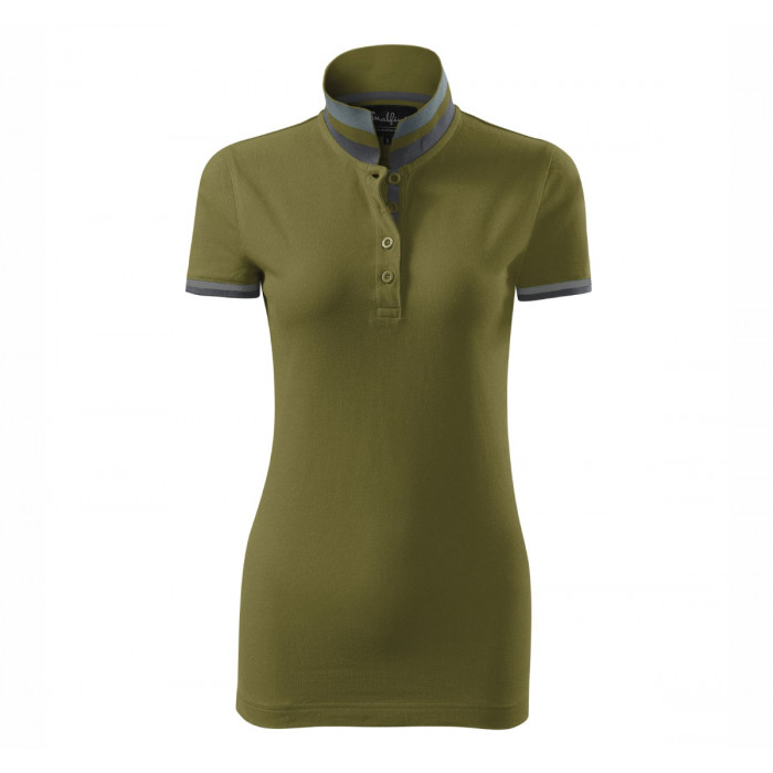 Материал: пике, 100% хлопок. Крой с боковыми швами. Воротник и рукава вязаные в рубчик 1:1. Нижняя часть воротника и подола рукавов с контрастными полосами. Планка на 2 пуговицах цвета черепашка. Разрезы в боковых швах и нижняя планка с контрастной лентой. Внутренний вырез с контрастной лентой.