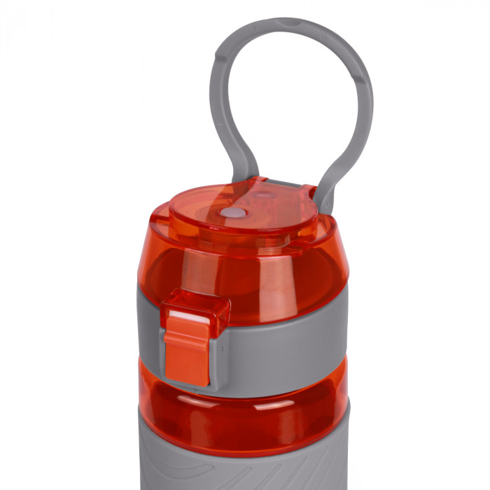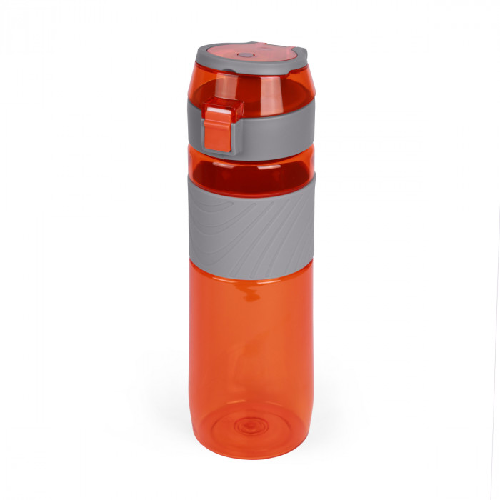 Пляшка для пиття 750 мл., матеріал пластик (BPA FREE), ергономічна силіконова вставка, кришка з надійним відкидним механізмом, має пластикову ручку для зручного тримання, в середині зьемна пластикова фільтруюча сітка. Группа нанесення шовкодрук, уф-друк. Розмір: висота 25,4 см., діаметр колби 7 см.