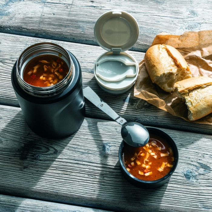 Цей харчовий термос Schwarzwolf об'ємом 550 мл дозволяє брати улюблений суп або кашу з собою в поїздку на природу або навіть на роботу і зберігати їх гарячими або холодними довго. Для Вашої зручності термос доповнений складною ложкою в ковпачку. Він простий в обслуговуванні і має практичний дизайн. Запакований подарункова коробка Schwarzwolf.