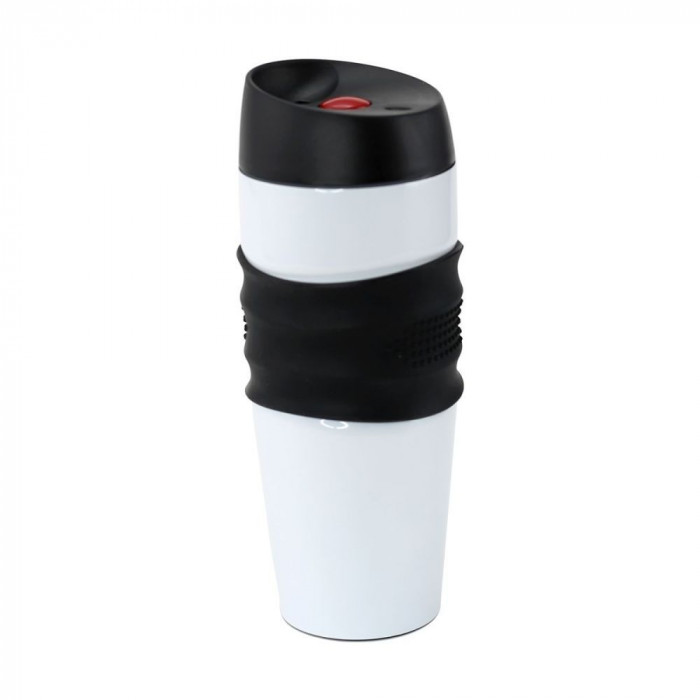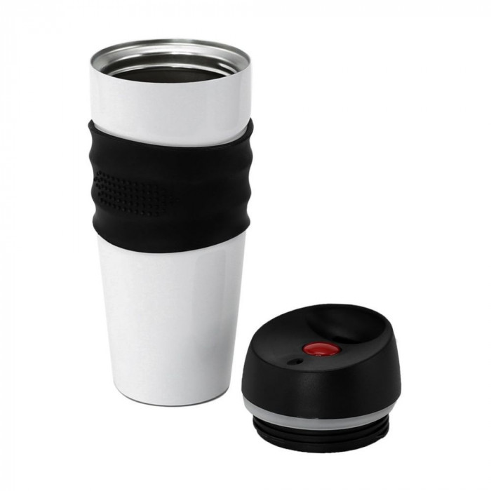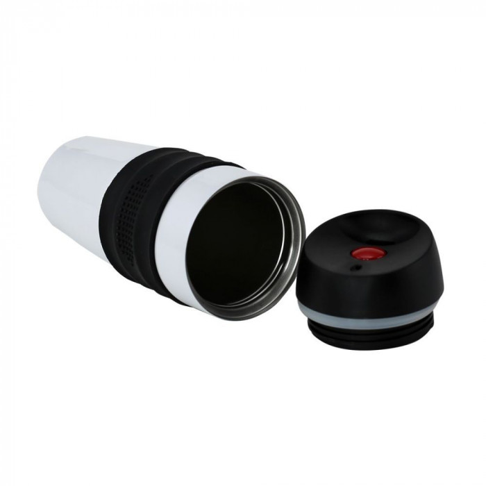 Настоящий компаньон не даст умереть от жажды! Бери термокружку с собой везде и всюду! Надежная термокружка в современном дизайне с эргономической силиконовой зоной хвата. Корпус и внутренняя колба выполнены из нержавеющей стали. Оригинальный носик и воздушный клапан делают питье и наливание напитка максимально комфортным, без разбрызгивания. Открытие и закрытие клапана происходит по нажатию на кнопку что максимально удобно и полностью исключает возможность случайного открытия и протекания термокружки в сумке.