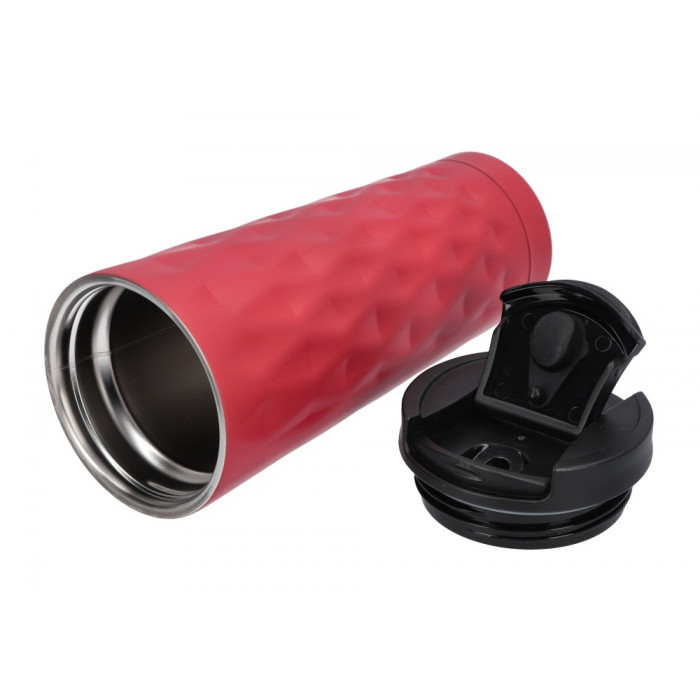 Стильний бізнес подарунок; зручно використовувати в автомобільному підстаканнику; однаково підходить як для гарячих так і холодних напоїв; подвійна високоякісна нержавіюча сталь; гумовий ущільнювач запобігає витіканню рідини та забезпечує тривале збереження температури напою; об'єм 500 мл; простота в очищенні та догляді.