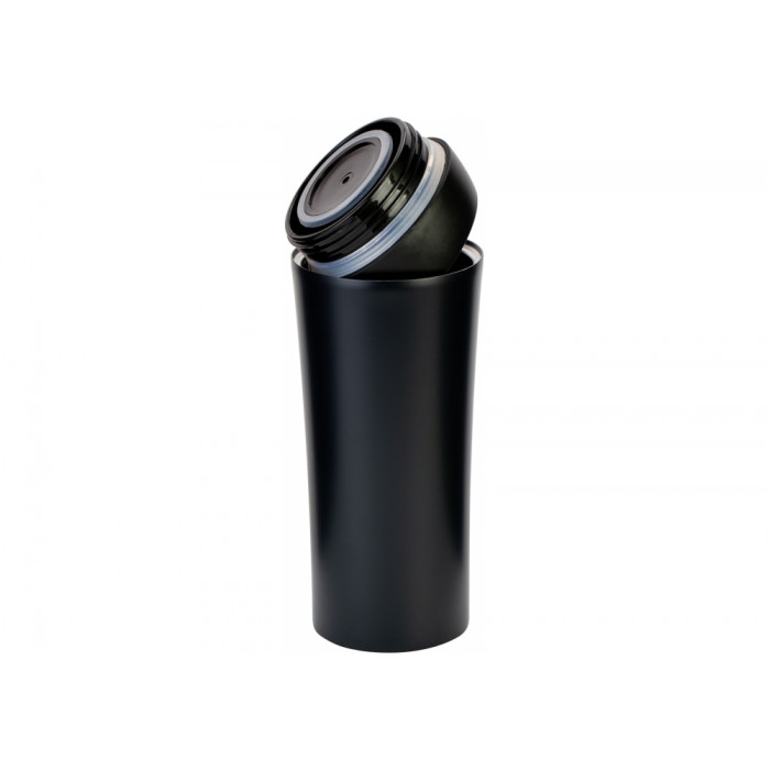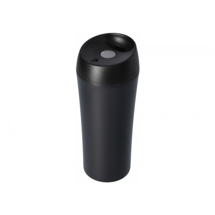 Класична термокружка; герметична кришка з кнопковим клапаном для пиття; однаково підходить як для гарячих так і холодних напоїв; подвійна високоякісна нержавіюча сталь; гумовий ущільнювач запобігає витіканню рідини та забезпечує тривале збереження температури напою; об'єм 400 мл; простота в очищенні та догляді.