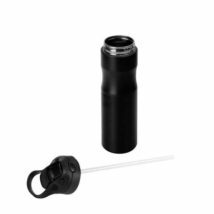 Металлическая спортивная бутылка Frontera Line Art 750 мл из нержавеющей стали и силиконовой трубочкой для питья отличается стильным современным дизайном.