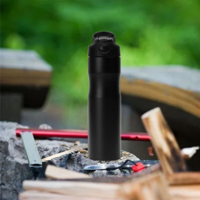 Мягкая на ощупь поверхность софт-тач и эргономичная форма бутылки делают ее использование невероятно приятным. Сама бутылка сделана из нержавеющей стали 304, а в пластиковой крышке предусмотрено специальное отверстие для питья, так что пить из нее можно не только на ходу, но и на беге.