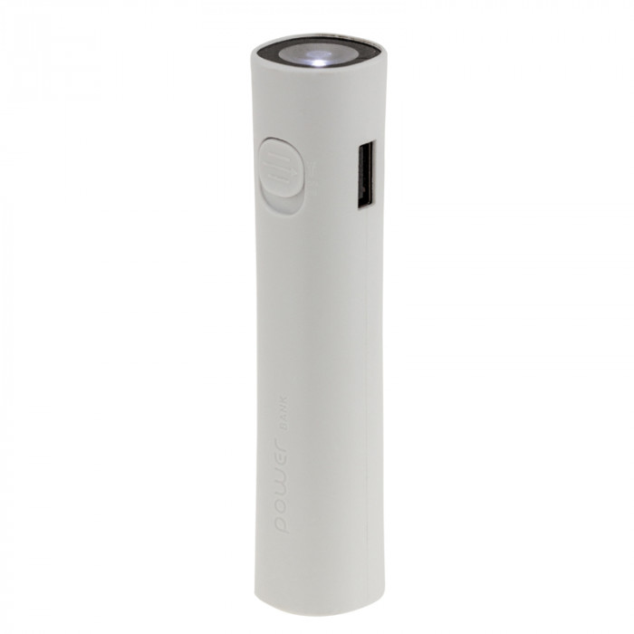 Повербанк з функцією ліхтарика. Яскравий світлодіод і компактний корпус портативної батареї дозволяє використовувати її як маленький кишеньковий ліхтарик. Ємність 2600 мА / год. Параметри заряду: вхід - 5В / 0,5A, вихід - 5В / 0,8A. Зарядка від USB. Матеріал корпусу: пластик.