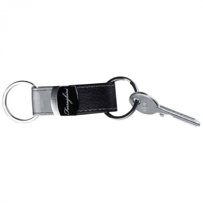 Практичный брелок для ключей, со снимающимся кольцом. Удобен в случае, когда нет необхдимости ношения всех ключей. Современный, оригинальный дизайн. Выполнен из кожаого ремешка и металической пластинки с изящной надписью Ferraghini.
