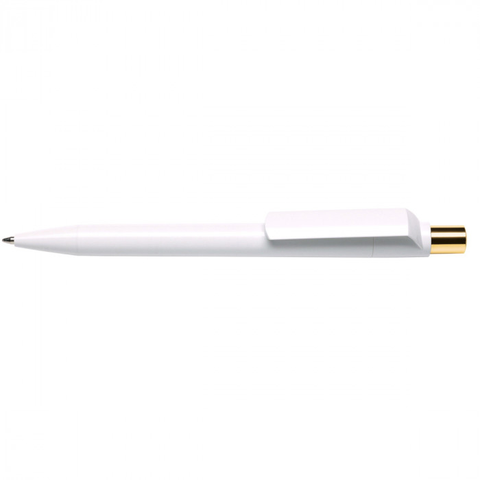 Автоматическая шариковая ручка "Dot CGOLD" от Maxema оснащена нажимным механизмом выдвижения стержня. Корпус ручки изготовлен из нетоксичного глянцевого ABS пластика белого или черного цвета, с золотистой кнопкой. Стержень Jumbo синего цвета, сменный.