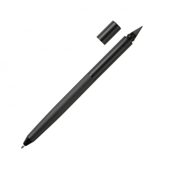 Ручка металева у футлярі Born поєднує в собі стиль і преміальну якість. Її елегантний металевий корпус та зручний дизайн роблять її ідеальним аксесуаром для ділових людей та подарунком для особливих моментів. Вона поставляється в розкішному футлярі, що додає ще більше елегантності та статусу. З одного боку ручка, з іншого - вічний олівець. Ручка з синім чорнилом.
